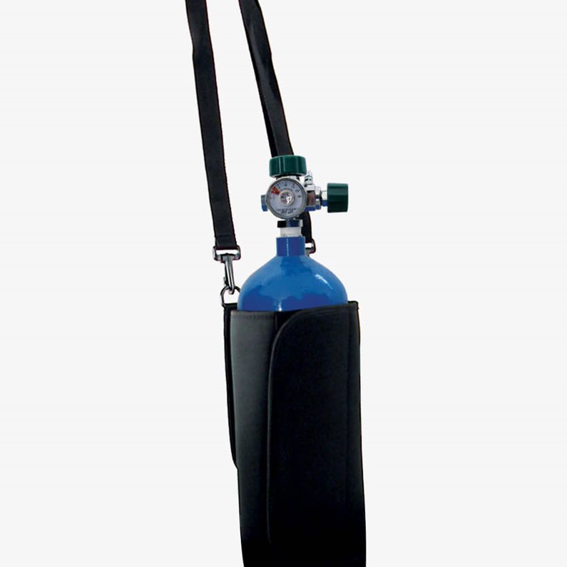 De houder kan worden aangepast aan elk formaat zuurstoffles en kan tot 5 kg dragen. Daarnaast is de houder uitgerust met een schouderband, zodat u de zuurstoffles ook zonder rollator eenvoudig kunt meenemen.